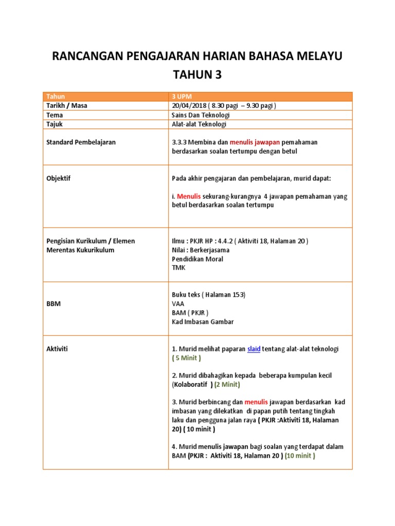 RANCANGAN PENGAJARAN TAHUNAN BAHASA MELAYU SJK TAHUN 3 CADANGAN HP PKJR DAERAH PASIR GUDANG TAHUN 2019 Minggu Tema Tajuk Standard Kandungan Standard Pembelajaran Pengisian Kurikulum Minggu 1 0101-0301 TEMA 1 KEKELUARGAAN Unit 1 Keluarga Cergas 11 Mendengar dan memberikan respons 21 Asas membaca dan memahami. Sekolah Menengah Dilaksanakan secara menyeluruh di seluruh negara Tingkatan 2 4 2011 Dilaksanakan secara rintis jumlah sekolah akan ditentukan oleh jawatankuasa PKJR Tingkatan 2 4 Dilaksanakan secara penuh seluruh negara Tingkatan 1 2010 Dilaksanakan secara rintis jumlah sekolah akan ditentukan oleh jawatankuasa PKJR Tingkatan 1 2009. Papan tanda laluan pejalan kaki Add to my workbooks 0 Download file pdf Embed in my website or blog Add to Google Classroom.